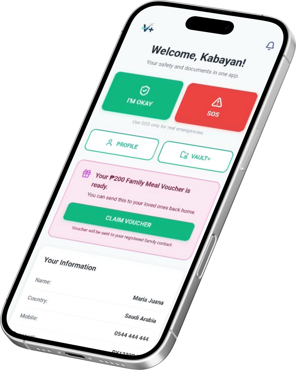 Our goal is to give every Filipino abroad a safer, more dignified life by protecting their documents, empowering their voice through IM OKAY and SOS, and keeping their families connected when it matters most.